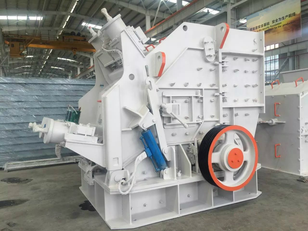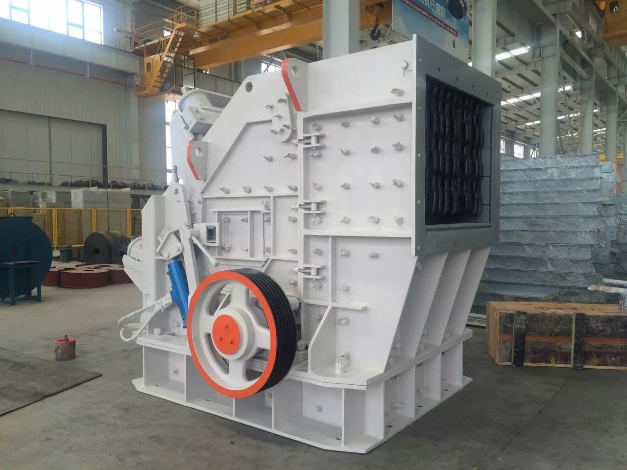 反击式破碎机采用新的制造技术,独特的结构设计,反击式破碎机,用于破碎进料粒度不超过500mm、抗压强度不超过350MPa的各种粗、中、细物料(花岗岩、石灰石、混凝土等),广泛应用于各种矿石破碎、铁路、高速公路、能源、水泥、化工、建筑等行业。其排料粒度大小可以调节,破碎规格多样化。我公司系列反击破有两腔、三腔及大口反击破系列,结构独特,采用无键连接、高铬钣锤、独特的反击衬板;简化破碎流程,高效节能;成品呈立方体;排料粒度大小可调节,加工成品呈立方体,无张力和裂缝,粒形相当好。